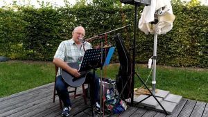 Musiker Thomas Rieke unterhielt die Gäste live mit Blues- und Bluesrock-Interpretationen. Derweil sorgten die Gäste am Büffet für ihr leibliches Wohl und in vielen Begegnungen und Gesprächen für ihr seelisches Wohl.